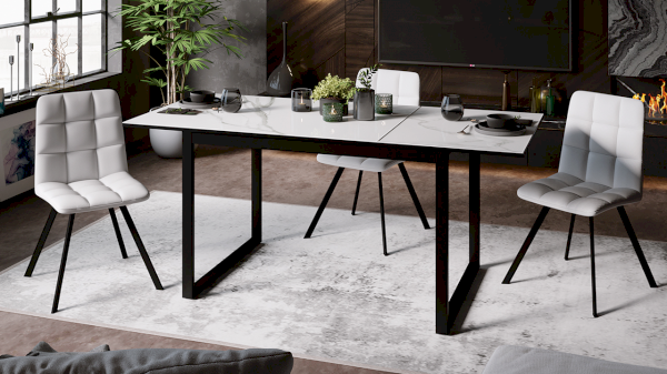 Новинка выполнена в актуальном декоре «Черный муар/стекло белый мрамор», который, оценят любители стильных и необычных решений. Стол будет эффектно смотреться и привлечет внимание своим внешним видом.