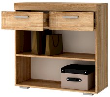 В гостиной Соната применяются современные европейские декоры: корпус выполнен из ЛДСП Дуб сонома, фасад из ЛДСП Белый глянец. Декоры отличаются выраженной тёплой древесной текстурой, а фасадная часть подчёркнута горизонтальными линиями текстуры и стильными планками МДФ, представляющими собой элементы корпуса и фасада.