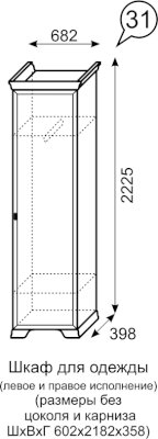 Шкаф-пенал для одежды №31 Венеция (Ижмебель) - за 21 216 руб. в Климовске. Купите на сайте klimovsk.onlinemarketmebeli.ru или по телефону 8(800)505-30-63 уже сегодня! Уточнить наличие, комплектацию, актуальную цену можно бесплатно у менеджера ежедневно. Закажите Шкаф-пенал для одежды №31 Венеция (Ижмебель) до конца акции! Доступна покупка в кредит, рассрочку. Доставим со склада или на заказ.