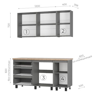 Глубина нижних шкафов, мм | 500 |
