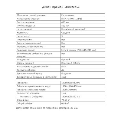 Диван Пиксель (Аквилон) - за 30 305 руб. в Климовске. Купите на сайте klimovsk.onlinemarketmebeli.ru или по телефону 8(800)505-30-63 уже сегодня! Уточнить наличие, комплектацию, актуальную цену можно бесплатно у менеджера ежедневно. Закажите Диван Пиксель (Аквилон) до конца акции! Доступна покупка в кредит, рассрочку. Доставим со склада или на заказ.