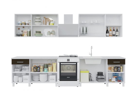 Объединяя два набора, размер кухни можно увеличивать и получать TREND 2600, суммируя наборы. Все кухни собираются в зеркальном исполнении.