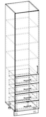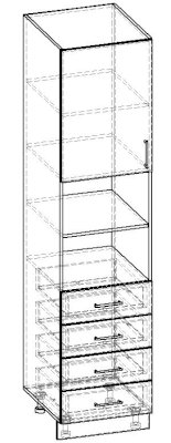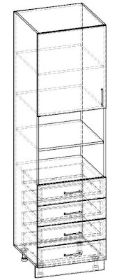 Пенал 1 дверный 4 ящика с полкой 500 500х570х2134 500х570х2134 500х570х2134