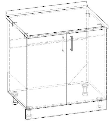 • Пристеночный плинтус (пластиковый со вставкой) - входит в стоимость модуля и изготавливается в цвет столешницы.