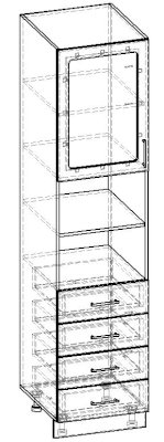 Пенал 1 дверный 4 ящика с полкой витрина 600 КП.005.600-02/04
