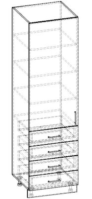Пенал однодверный 4 ящика 600 КП.002.600-02