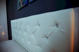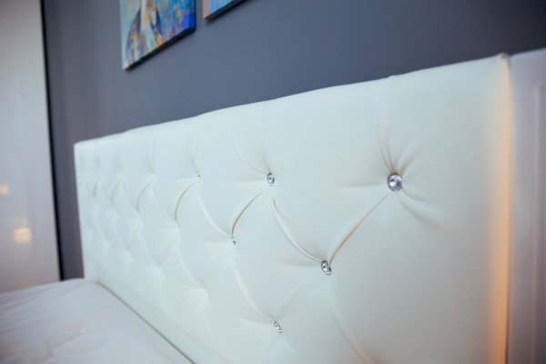 3.  Мягкое изголовье из матовой экокожи Galaxy New White с каретной стяжкой со стразами.