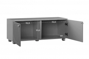 Тумба оснащена двумя распашными дверцами, за которыми располагается вместительное внутреннее пространство для хранения книг, игрушек, текстиля и других необходимых вещей. Такое решение позволяет скрыть содержимое и сохранить аккуратный внешний вид комнаты.